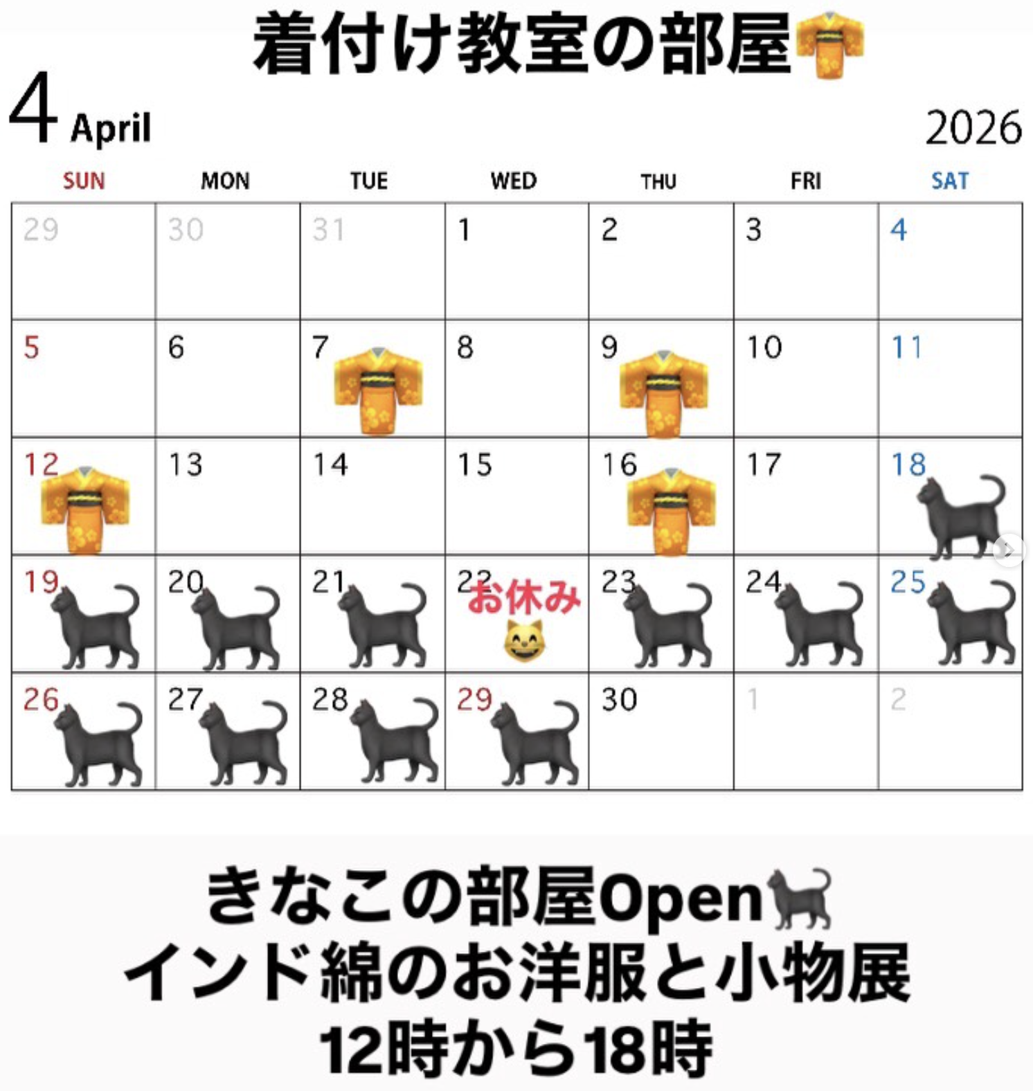 #きなこの部屋 #保護猫のいるアトリエ #インド綿のお洋服と小物2026 #保護ボランティア #着付け教室の部屋